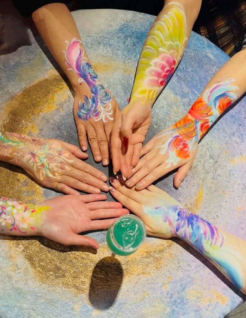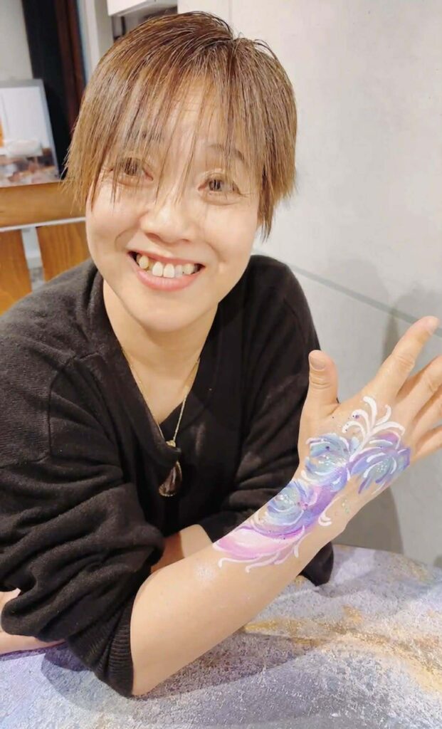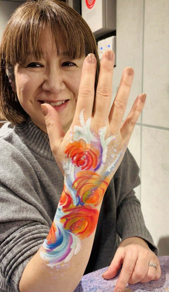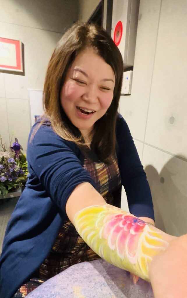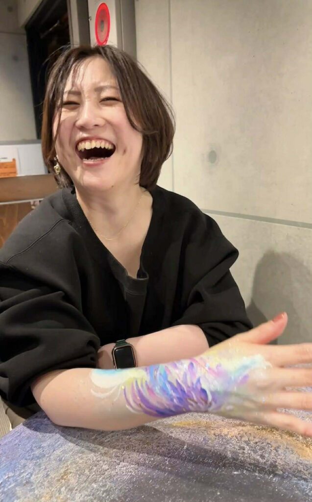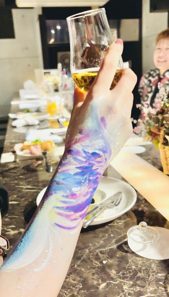 参加者さんの心の内面に見えるものを腕に描いていただき、そのイメージに合わせて私がカクテルを作りました。